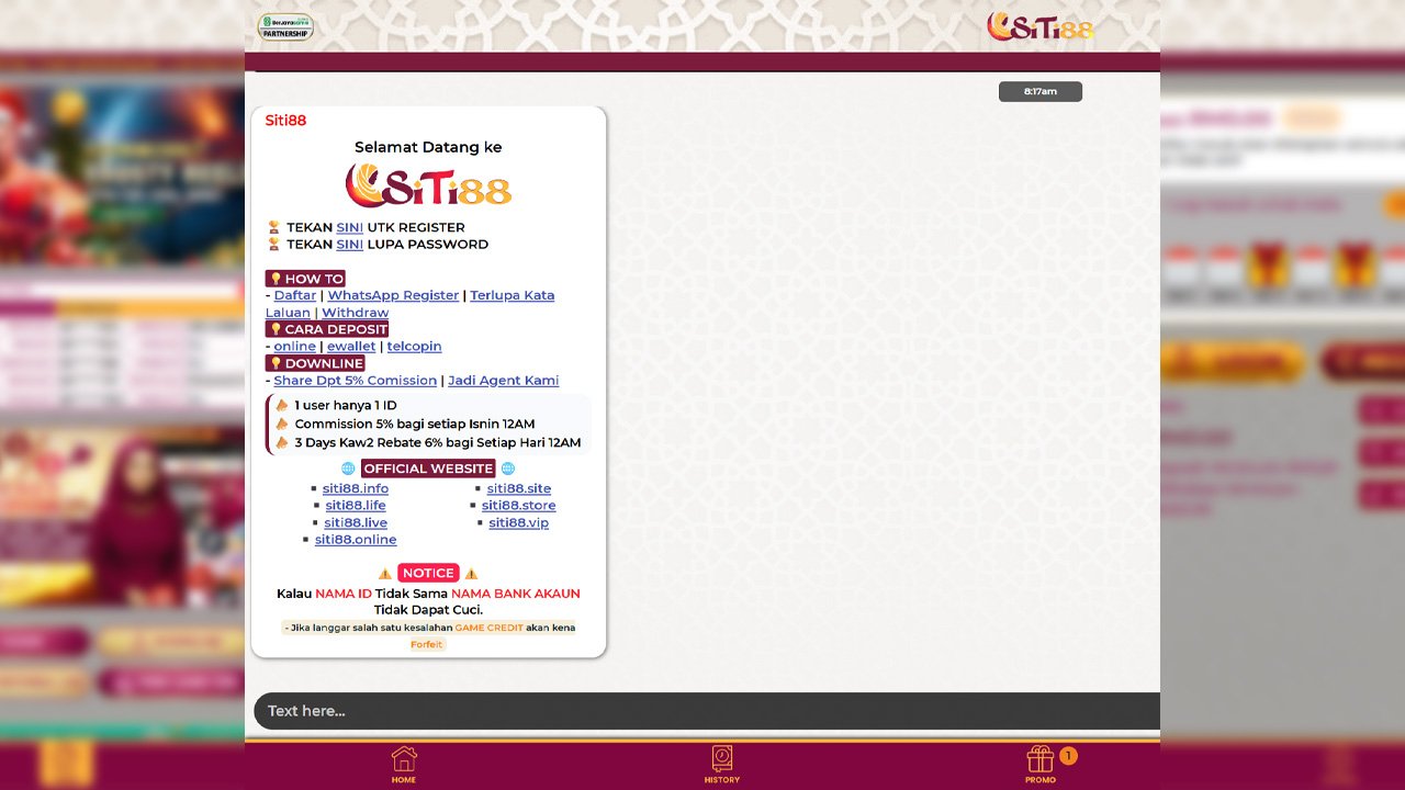 Kalau ada agent tiruan hubungi anda → itu bukan Siti88.